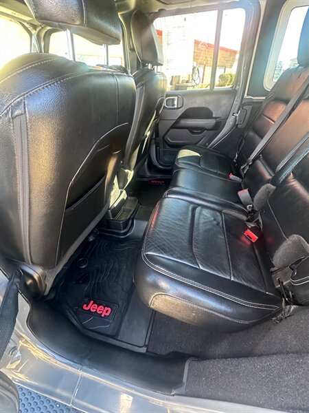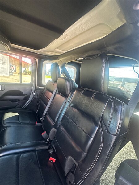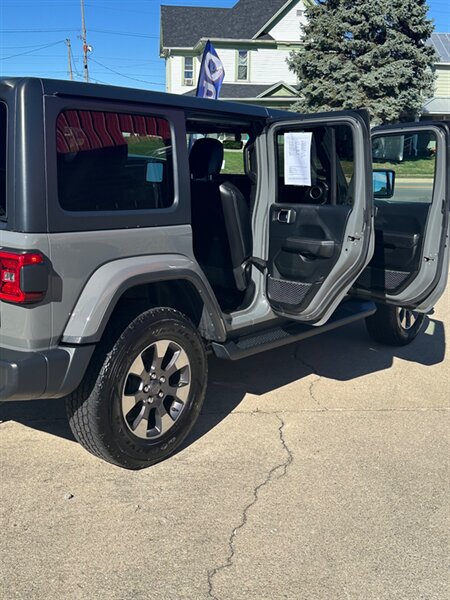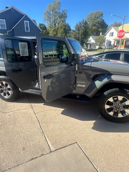 2018 Jeep Wrangler Unlimited Sahara — Sting Gray Clear Coat exterior, Black leather interior. This four-door Sahara blends true off-road capability with everyday comfort and modern tech. Under the hood is the spirited 2.0L Turbo I4 delivering 270 hp and 295 lb-ft of torque, giving you responsive passing power and confident performance whether you're on the highway or heading off the beaten path. EPA fuel economy is an efficient 22 MPG city / 24 MPG highway, and the vehicle is in excellent overall condition.