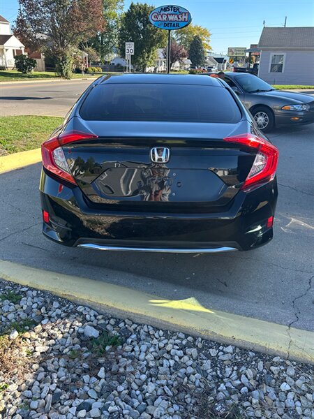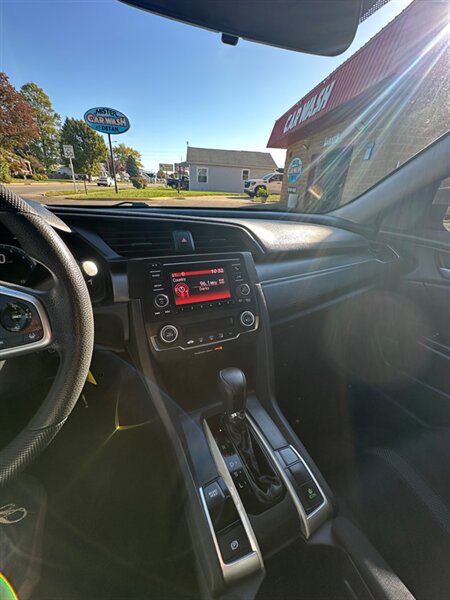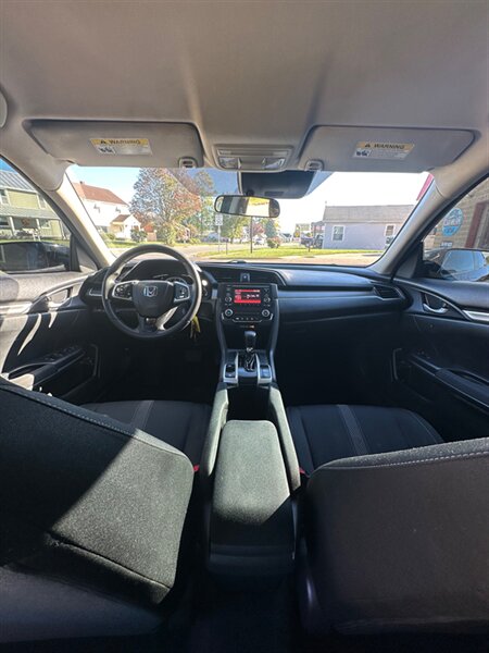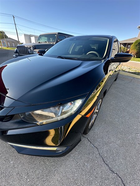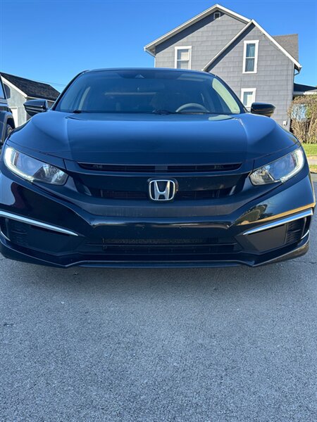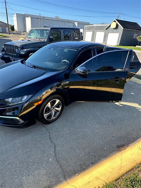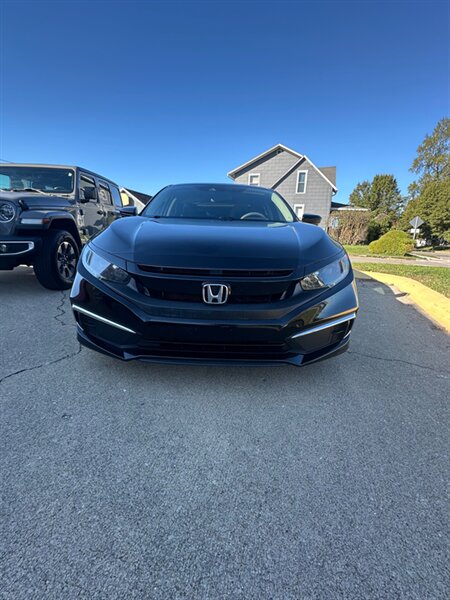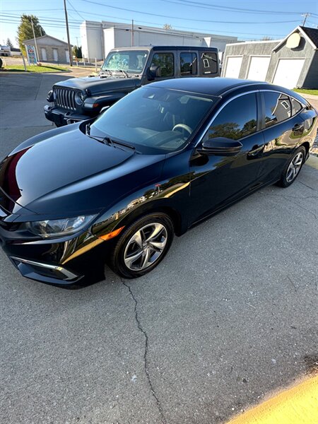 2019 Honda Civic LX in Crystal Black Pearl with a clean Black cloth interior. Powered by a 2.0L I4 (158 hp / 138 lb-ft) mated to a smooth CVT, delivering an EPA-estimated 30 MPG city and 38 MPG highway.